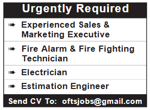 Urgently Required ➠ Experienced Sales & Marketing Executive ➠ Fire Alarm & Fire Fighting Technician ➠ Electrician ➠ Estimation Engineer