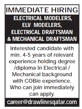 Required ELECTRICAL MODELERS, ELV MODELERS, ELECTRICAL DRAFTSMAN & MECHANICAL DRAFTSMAN