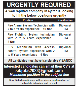 URGENTLY REQUIRED Fire Alarm System Technician / Fire Fighting System technician/ELV Technician with Access control system