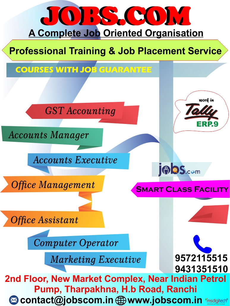 GST Accounting Job in Ranchi emsdigi6 0 service Hello All, Jobs.com is a noteworthy name, if you are a job seeker and looking for reliable placement assistance. The company i