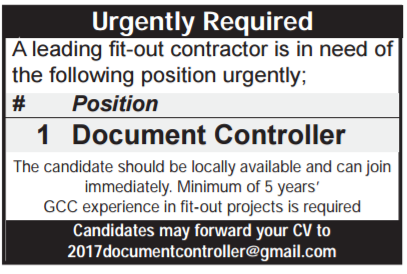 Urgently Required 1 Document Controller