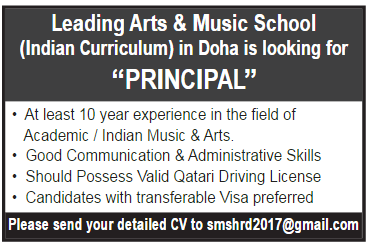 eading Arts & Music School (Indian Curriculum) in Doha is looking for“PRINCIPAL