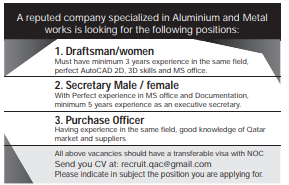 Required 1. Draftsman/women 2. Secretary Male / female 3. Purchase Officer