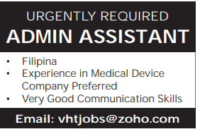 URGENTLY REQUIRED ADMIN ASSISTANT