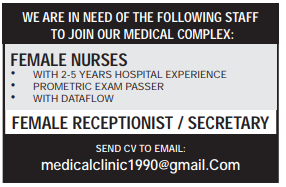 REQUIRED FEMALE NURSES FEMALE RECEPTIONIST / SECRETARY