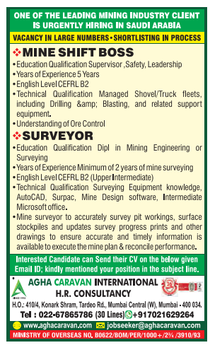 Required MINE SHIFT BOSS SURVEYOR