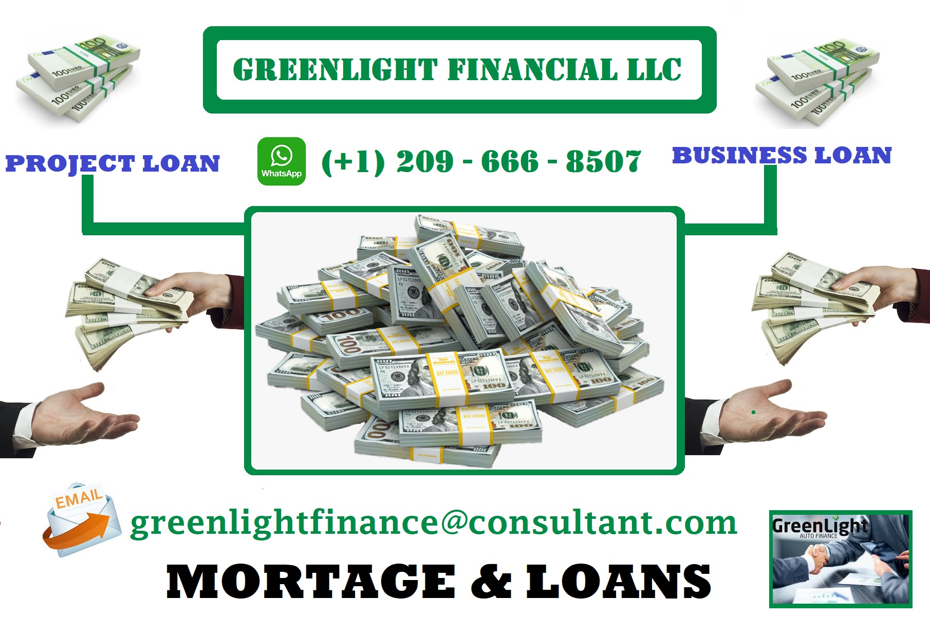 Greenlight Financial LLC A Certified Commercial Financial Provider with over 15 years of Specialized experience in Financial & Business Consulting Services. We're dedicated to Providing Financial Services to Companies & Individuals Globally, even in the most remote part of the world. Our authorized strong & reliable Capital Investment Funds enables us to offer Financial Assistance including Start-Up Business, Career & Agricultural Financing, Mortgage & Loans, Projects, Debt Consolidation, REIT, IPO E.T.C.