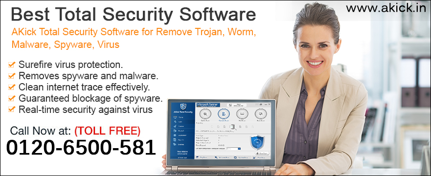Download the Best Total Security software of AKick and get advanced protection online viruses, threats, malware, etc. Go to www.akick.in or call on the toll-free number, 0120-6500- 581.
