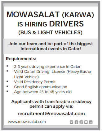 MOWASALAT (KARWA) IS HIRING DRIVERS (BUS & LIGHT VEHICLES)
